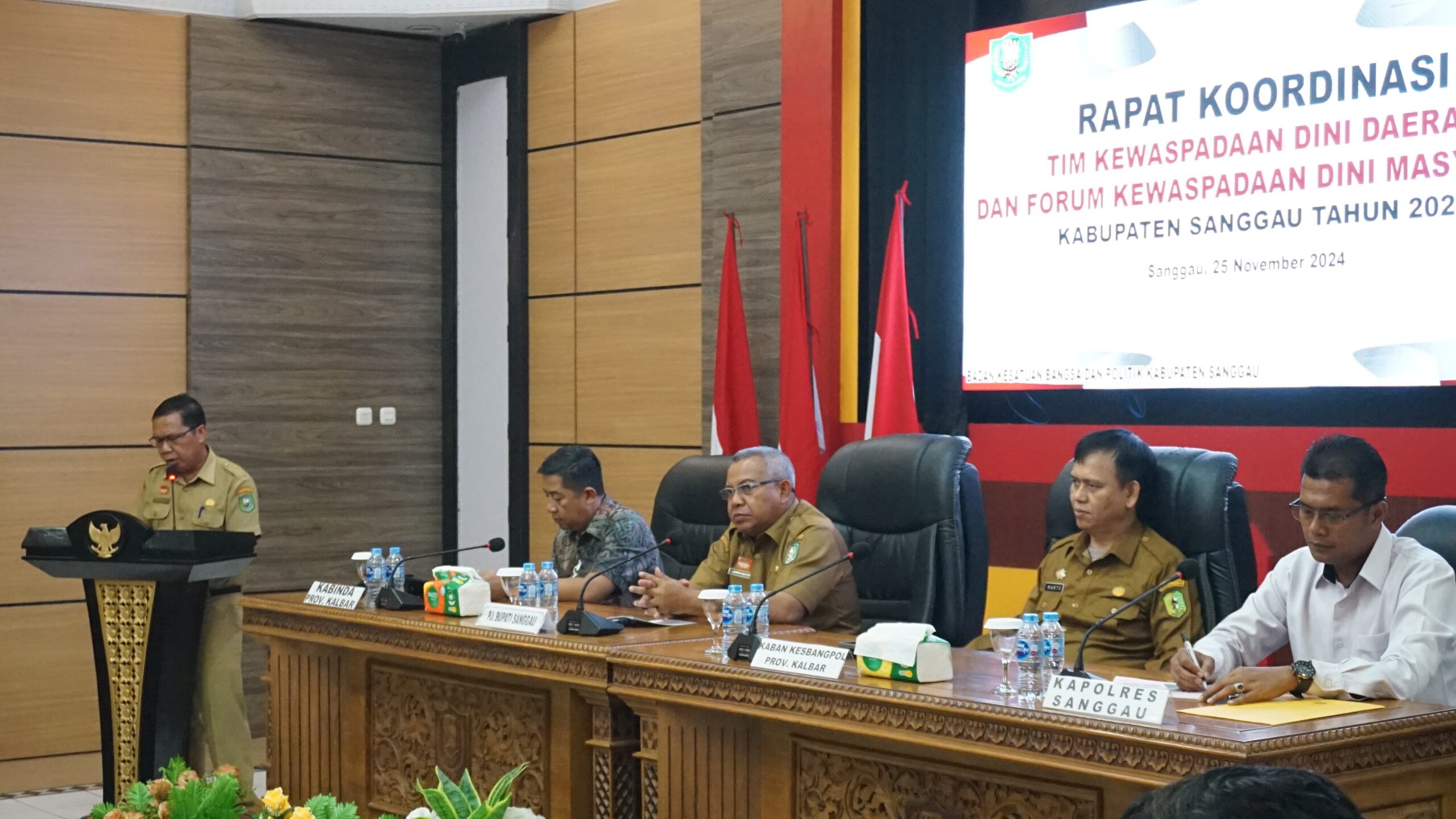 Penjabat Sekda Sanggau Aswin Khatib menghadiri rakor Kewaspadaan dini yang berlangsung di lantai satu Sekretariat daerah Sanggau, Senin 25 November 2024