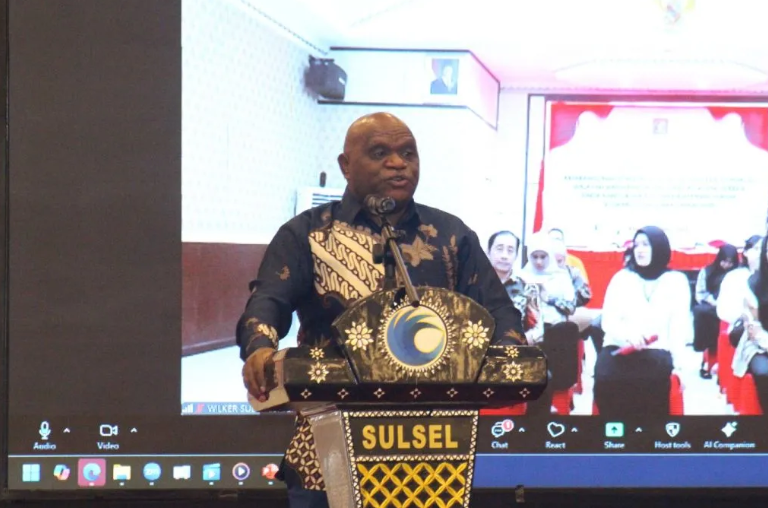 Menteri HAM Natalius Pigai menyampaikan amanat di hadapan pegawai Kantor Wilayah Kemenham Sulawesi Selatan dan Sulawesi Tenggara di Makassar, Senin (12/5/2025). (Ist)