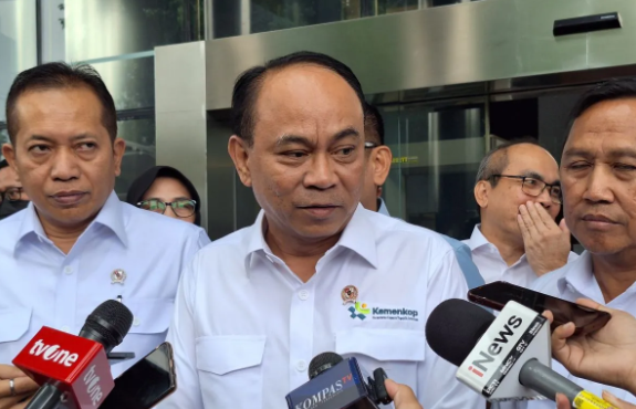 Menteri Koperasi Budi Arie Setiadi (tengah) memberikan keterangan kepada wartawan usai pertemuan dengan Komisi Pemberantasan Korupsi (KPK) untuk mencegah terjadinya penyimpangan dalam program Koperasi Desa Merah Putih, Rabu (21/5/2025). (Ist)