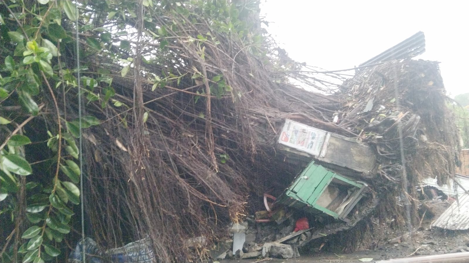 Tim gabungan langsung bergerak cepat mengevakuasi material pohon yang menimpa bangunan dan menutup akses jalan.